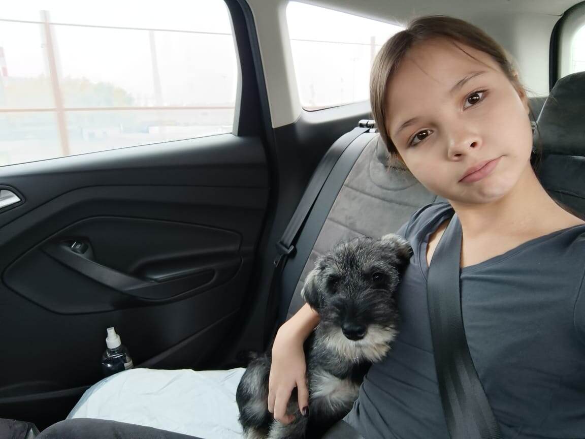 Когда забрали Черри у заводчицы и привезли домой, ей уже было три месяца. Везти щенка домой было приятно, интересно. С коленей дочки собака недоуменно взирала на дорогу в новую жизнь.