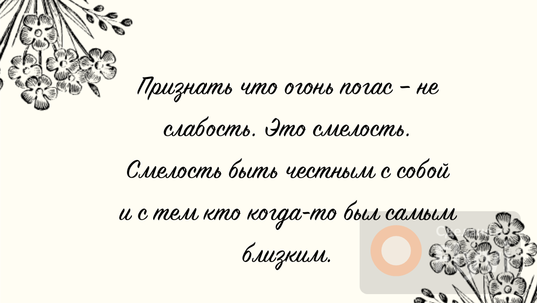 Когда близкие вдруг становятся чужими: Как понять что пора отпустить Знаете пару лет назад я сидел вот так же в кафе с подругой. Она крутила ложку в остывшем кофе и тихо сказала: «Мы с мужем... как два незнакомца в одной квартире. Просто мимо друг друга». Я тогда подумал: «Кризис пройдет». Но жизнь показала – иногда огонь в отношениях просто догорает. И это... нормально. Тяжело но нормально. Когда тишина между вами – уже не комфортная а... гулкая. В моем кабинете часто сидят люди которые описывают одно и то же: пустота. Живут вместе спят в одной кровати, а чувствуют себя... одинокими. Как будто между ними вырос толстый стеклянный экран. И самое яркое «красное знамя»? Вы перестали ДЕЛИТЬСЯ. Помните как раньше звонили ей с работы чтобы рассказать как чайник сломался? А теперь даже важное событие кажется... не стоящим разговора. Не из-за злости. Просто – зачем? Как будто говоришь не с любимой а с попутчиком в поезде: вежливо но без души. Одна моя клиентка как-то выдохнула: «Я перестала р