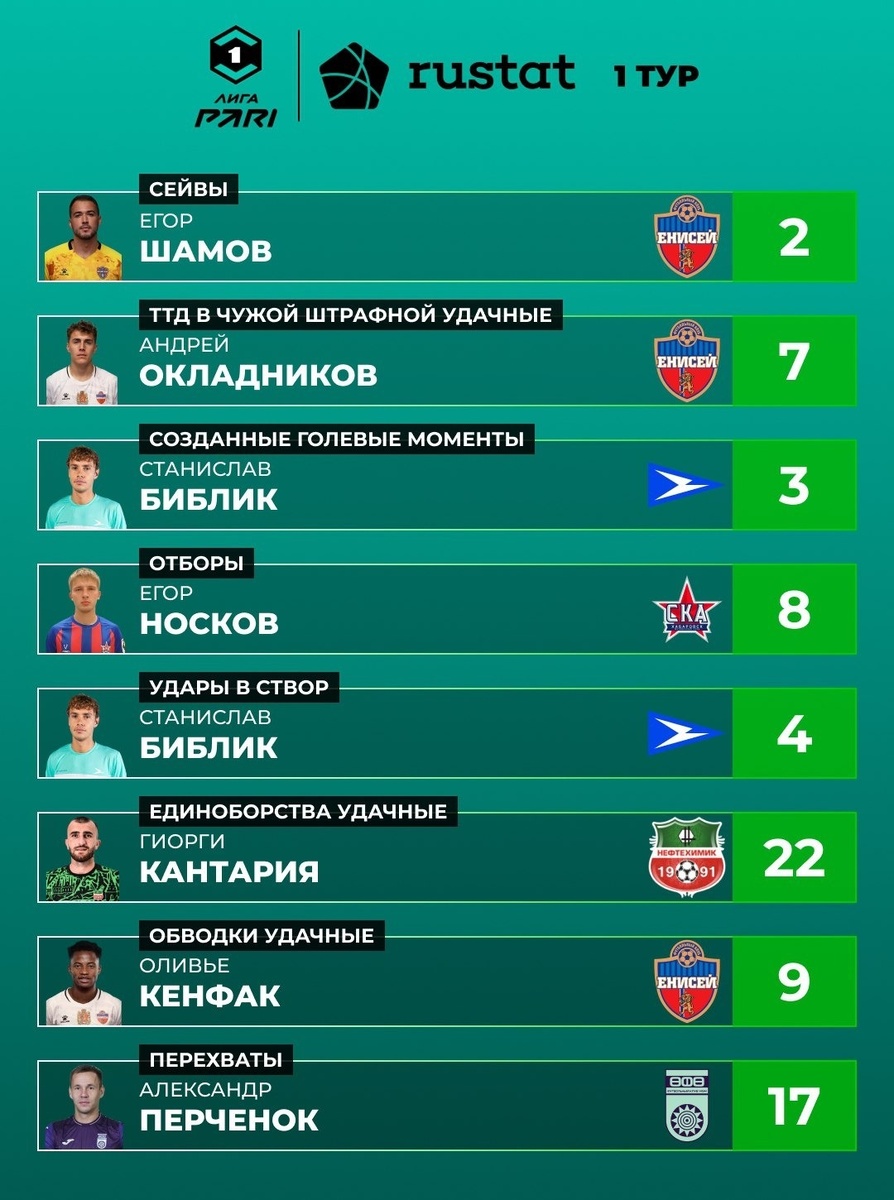 Футболист ФК «Уфа» Александр Перчёнок вошел в топ лучших игроков первого тура. Защитник уфимской команды совершил 17 перехватов в матче со «СКА-Хабаровском». Это стало лучшим показателем тура. В стартовом матче нового сезона Первой лиги ФК «Уфа» сыграл вничью против «СКА-Хабаровска».