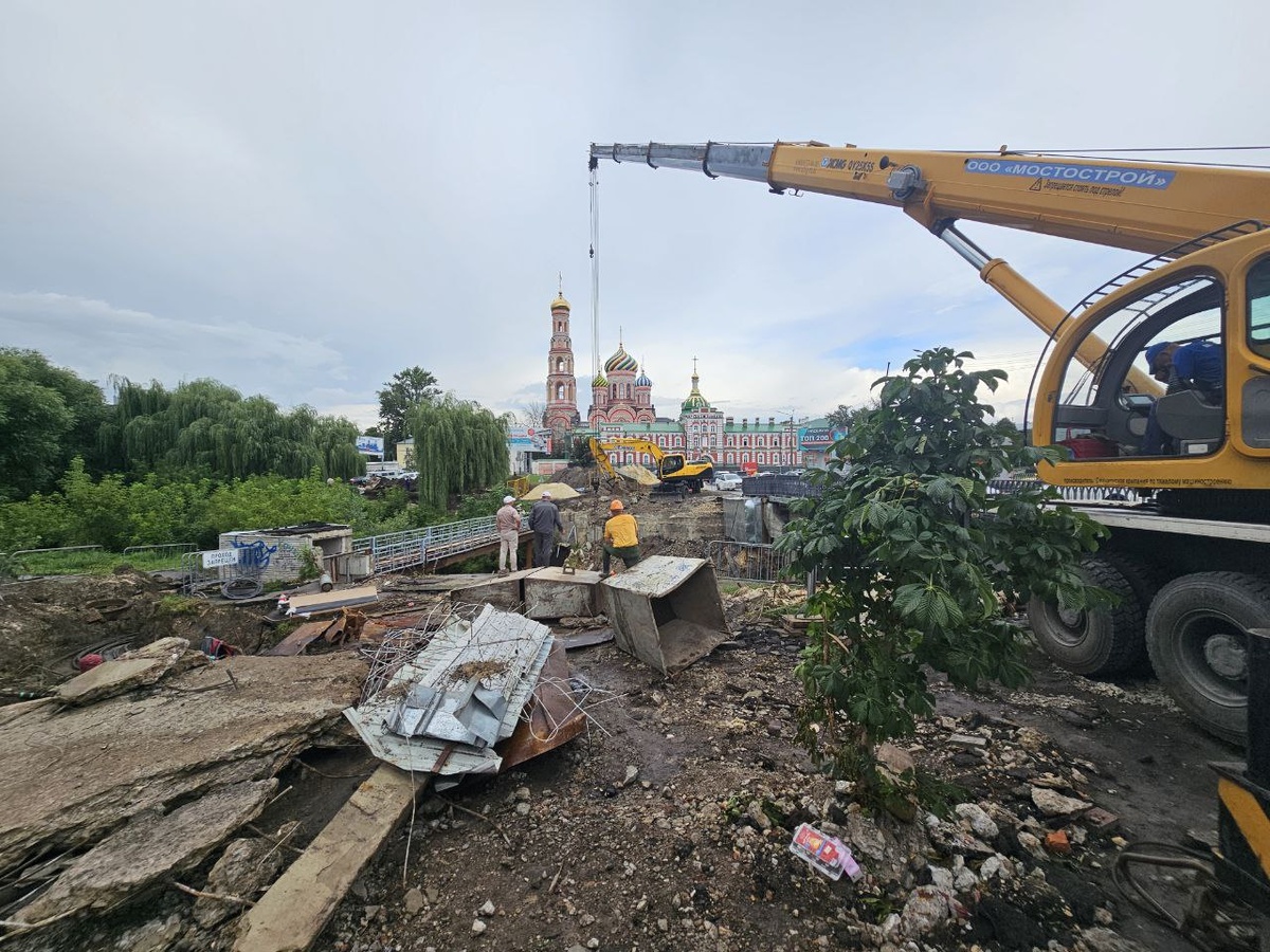На месте рухнувшего во время урагана Замятинского моста в Тамбове сооружают новый. Фото: @ПроТамбов