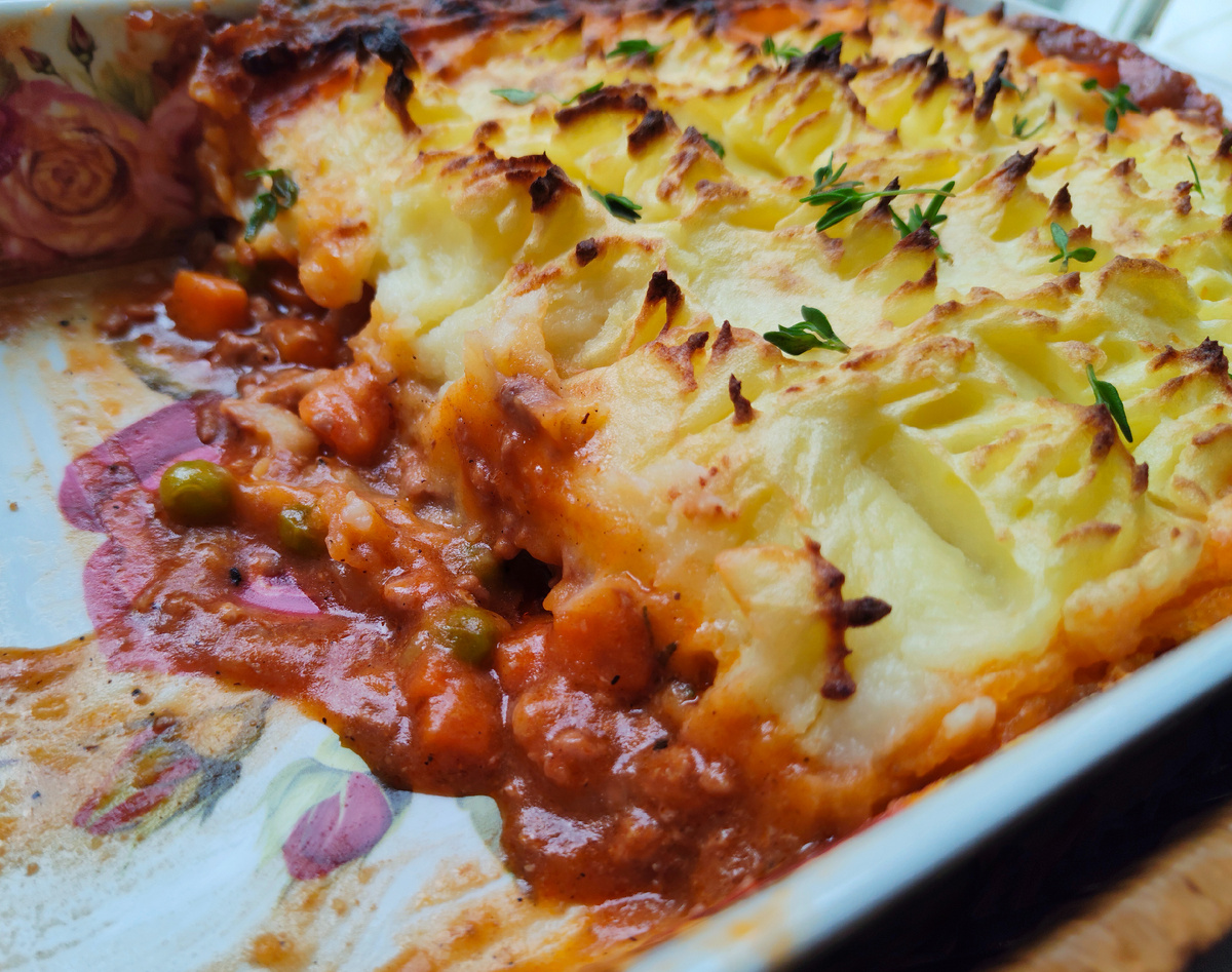 Так всё-таки, пирог или запеканка? Вы, должно быть, удивитесь, но картофельная запеканка с мясом, которую все мы ели в детстве в школьной столовой, в Англии гордо именуется пирогом. Это объясняется тем, что блюдо состоит из двух слоёв, и внешне напоминает пирог. Но, конечно, это не один в один та самая запеканка из столовой: по сравнению с ней, блюдо намного более нежное, сочное, изысканное и вкусное: Традиционный пастуший пирог "shepard's pie" готовится с бараниной, так как это мясо было для пастухов самым доступным. Но есть версия с говядиной, которая называется уже "cottage pie", то есть - "сельский пирог". Для его приготовления, следуйте этому же рецепту, просто вместо бараньего фарша возьмите говяжий. - фарш из баранины 400 г - картофель 800 г очищенного - лук 2 шт. небольших - морковь 2 шт. - сельдерей 2 стебля (у меня его не было) - зелёный горошек горсть свежего или замороженного - кукуруза свежая или замороженная горсть (у меня также без неё) - чеснок 2 больших зубчика - м