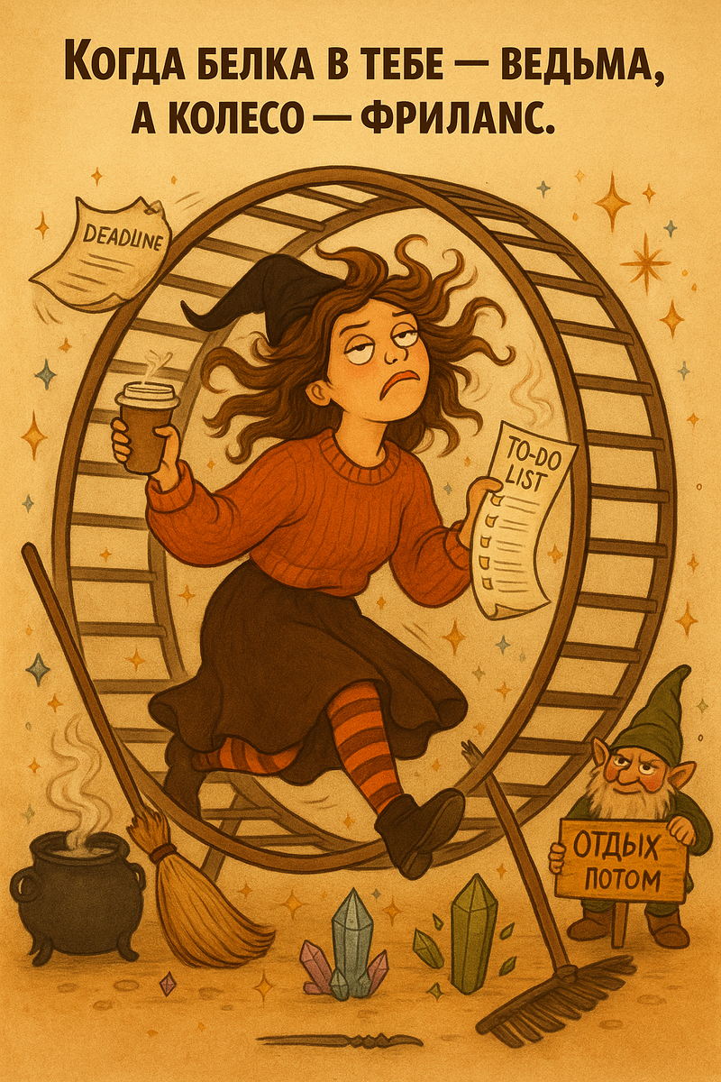 Есть такие дни, когда я чувствую себя не человеком, а белкой. Нет, не той, что грызёт орешки на завтрак в тишине леса. А белкой в колесе. В бешеном, скрипучем, безостановочном. Где вместо веточек — дедлайны, вместо желудей — уведомления, а колесо всё вертится, вертится, вертится…