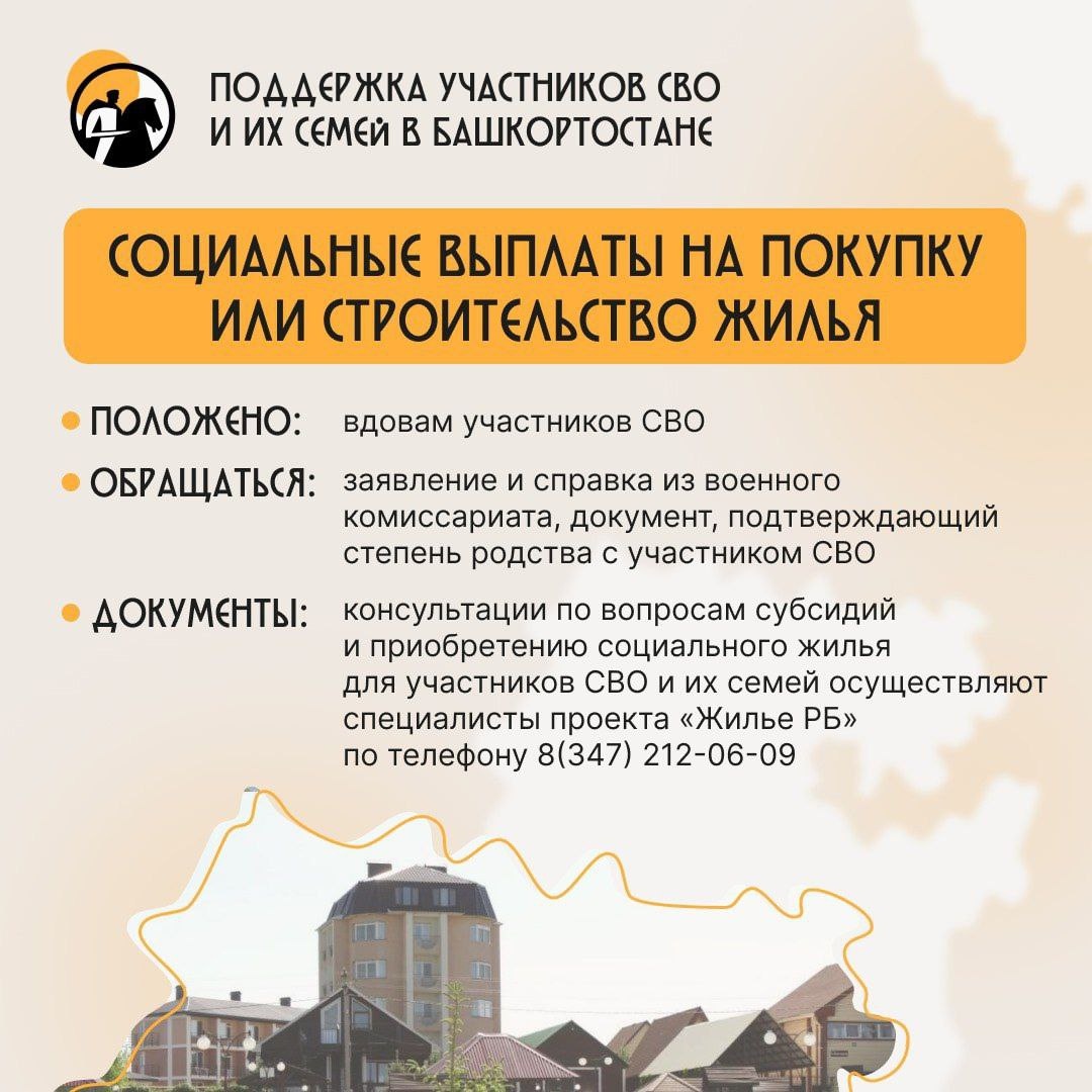 Супруги погибших участников СВО смогут получать социальные выплаты на покупку или строительство жилья в первоочередном порядке. Постановление об этом подписали в Правительстве. Социальные выплаты составят не менее 35% стоимости жилья. Их можно направить: — на покупку квартиры в новостройке или дома; — строительство собственного жилья; — первоначальный взнос или погашение ипотеки. Эту меру поддержки смогут получить вдовы: — не вступившие в повторный брак и воспитывающие ребёнка или нескольких детей; — в возрасте до 35 лет; — нуждающиеся в улучшении жилищных условий.