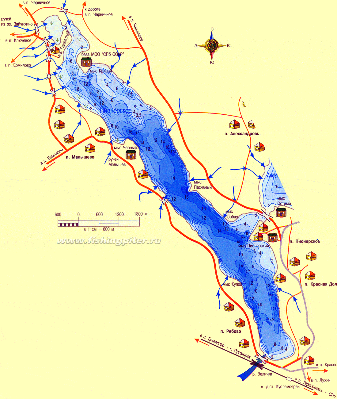 Озеро Пионерское (бывш. Kuolemajärvi) 🎣⛺️ ℹ️ О водоёме • Выборгский район Ленобласти, 35 км северо-северо-западнее Выборга (60.385 N, 28.945 E) • Площадь ≈ 14 км², длина 6 км, ширина до 3 км • Средняя глубина 5-7 м, максимум ~17 м (котловина Осиповским мысом) • Питание ключей; вода прозрачна на 2-3 м, слабоминерализована • Дно песчано-илистое, вокруг островов — россыпи валунов • Сток в р. Селезнёвку → Финский залив у Приморска 🐟 Обитатели и «средние» трофеи Щука 1-5 кг | Судак 0,7-2 кг | Окунь-«горбач» 0,3-1 кг Лещ 0,6-2 кг | Язь ≈ 1 кг | Плотва 150-300 г Чехонь, густера, уклейка | Налим (зима) | Сиг до 1 кг (редко) 🏖️ ТОП-7 береговых точек 1. Пляж «Рябово» — плотва / уклейка 0,8-1 м (поплавок) 2. Коса Красная Долина — щука 1-2 м (поверэностые приманки) 🐸 3. Осиповский мыс — судак свал 4-6 м (джиг 20-24 г) 4. Старица у истока Селезнёвки — лещ 5 м (ночной фидер) 🌙 5. Лагерь «Пионерское» — окунь-«горбач» микроджиг 6-8 г 6. Пристань «Крикула» — щука на колебалку