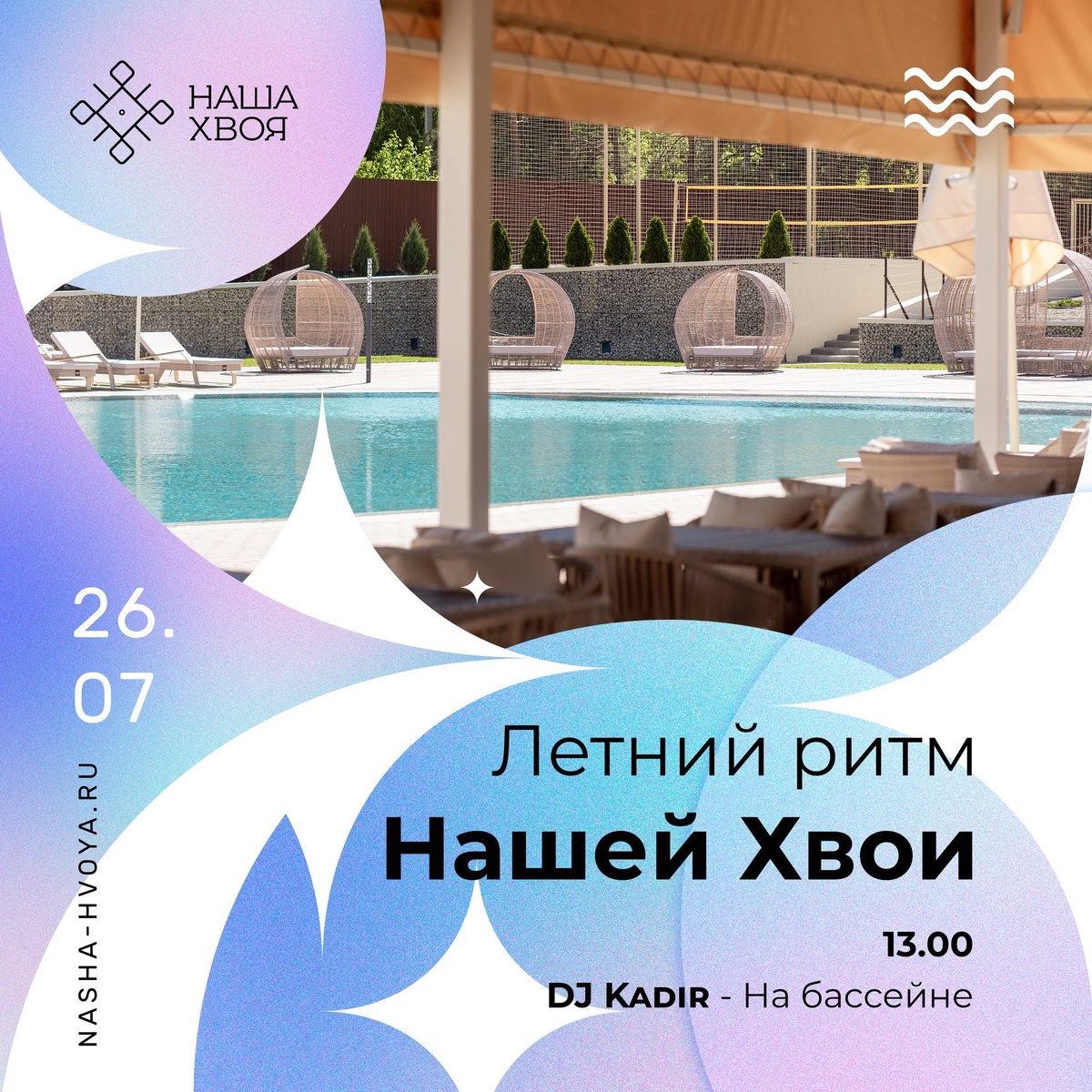 Лето продолжается, а это значит — самое время зарядиться солнцем, музыкой и хорошим настроением в парк-отеле «Наша Хвоя»! 💃 26 июля в 13:00 окунитесь в атмосферу летнего релакса под сеты DJ Kadir у нашего большого открытого подогреваемого бассейна с кристально чистой лазурной водой. Настоящий оазис для души и тела! 🎷 Вечером в 19:00 в ресторане — живое выступление талантливого саксофониста Алексея Глухова. Насладитесь изысканным ужином в сопровождении чарующей музыки. 🎶 27 июля в 13:00 продолжаем танцевать у бассейна — за пультом DJ Banderas! Впереди — еще один жаркий день, полный ярких эмоций и летней энергии. Лето в разгаре — проведите его вместе с нами! 📍 Адрес: ул. Санаторная, 28 📞 Телефон: +7 991 081-37-26 🌐 Сайт: nasha-hvoya.ru