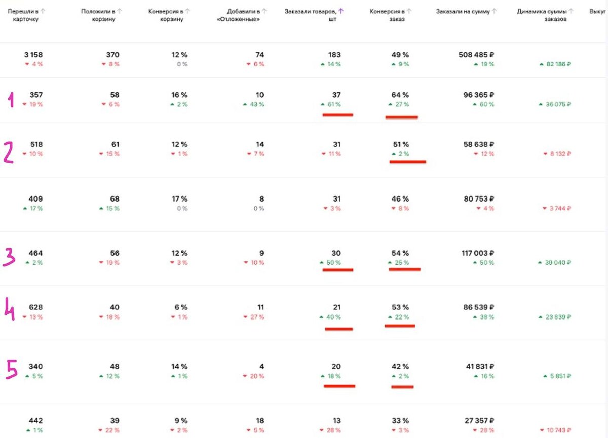 👀Как вы думаете, какое действие сделал вчера чтобы увеличить % в заказ карточек 1.2.3.4.5