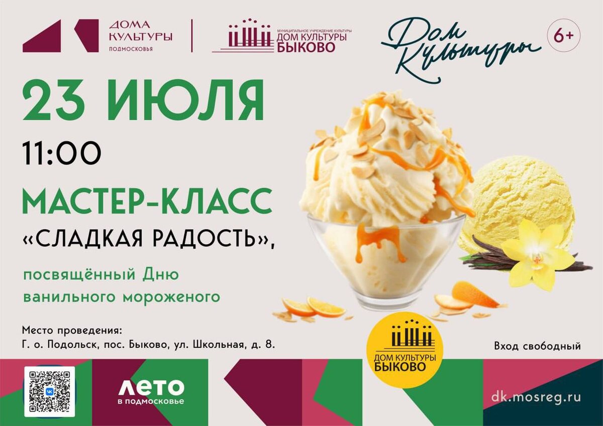✨ Мастер-класс Сладкая радость 🍦 👉Приуроченный ко Дню ванильного мороженого. Дети воплотят свои фантазии, создавая из подручных материалов свой вариант самого красивого мороженого»🍨 🚫 Возраст: 6+ 📆 23.07.2025 🕒 11:00 🏢 Дом культуры «Быково» 📍 Московская обл., г. Подольск, п. Быково, ул. Школьная, д. 8 💰 Вход свободный❗️ ⭐Разместить публикацию ⭐Поддержать канал голосом 💰 Стань курьером в Подольске – твой доход, твое время! ✅ Мероприятия Подольск https://dzen.ru/id/66ed500f7b5671493eca3fd6 http://vk.com/podolsk_events http://dzen.ru/podolsk_events