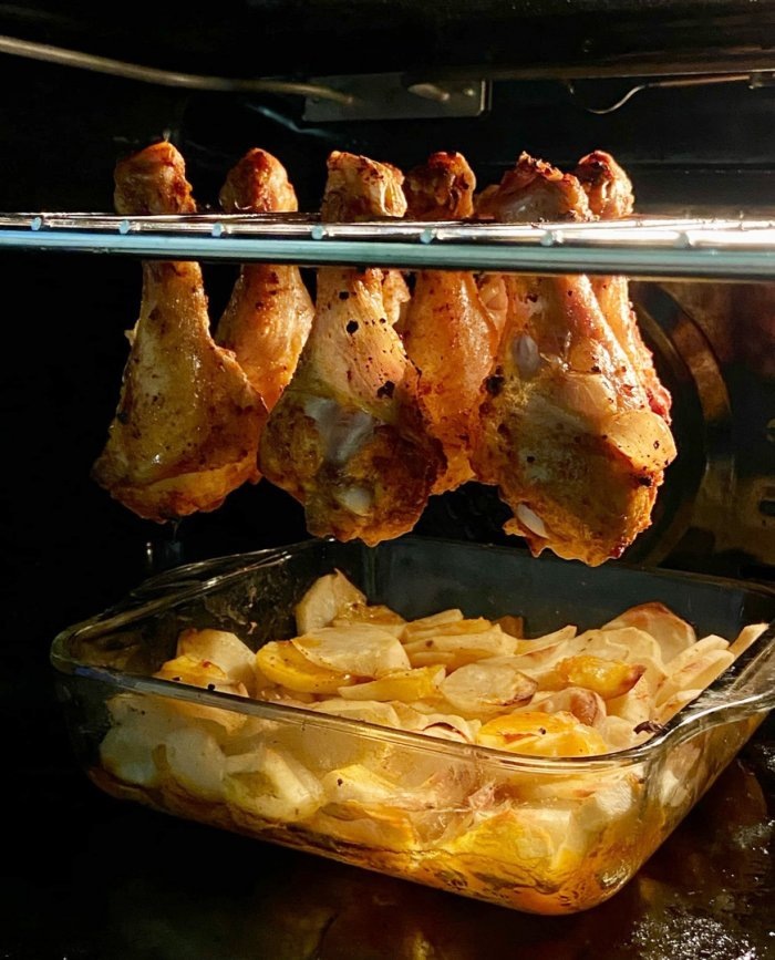 Куриные ножки на решетке в духовке с картошкой - необычный способ приготовления, вкуснейший результат
