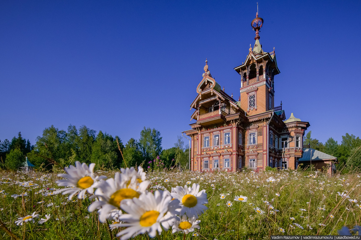 В разное время я уже снимал здесь и млечный путь, и звездопады, и мягкие туманы, и месяц, который будто бы "сидит" на крыше дома. И вот - в июле перед Теремом разлилось ромашковое поле: трогательные цветочки усиливают восприятие Терема. Творческим союзом владельцев Асташово - Андрея и Ольги, с самой Природой, кажется, можно восхищаться вечно. И каждый раз он предвещает что-то совершенно новое и незабываемое.