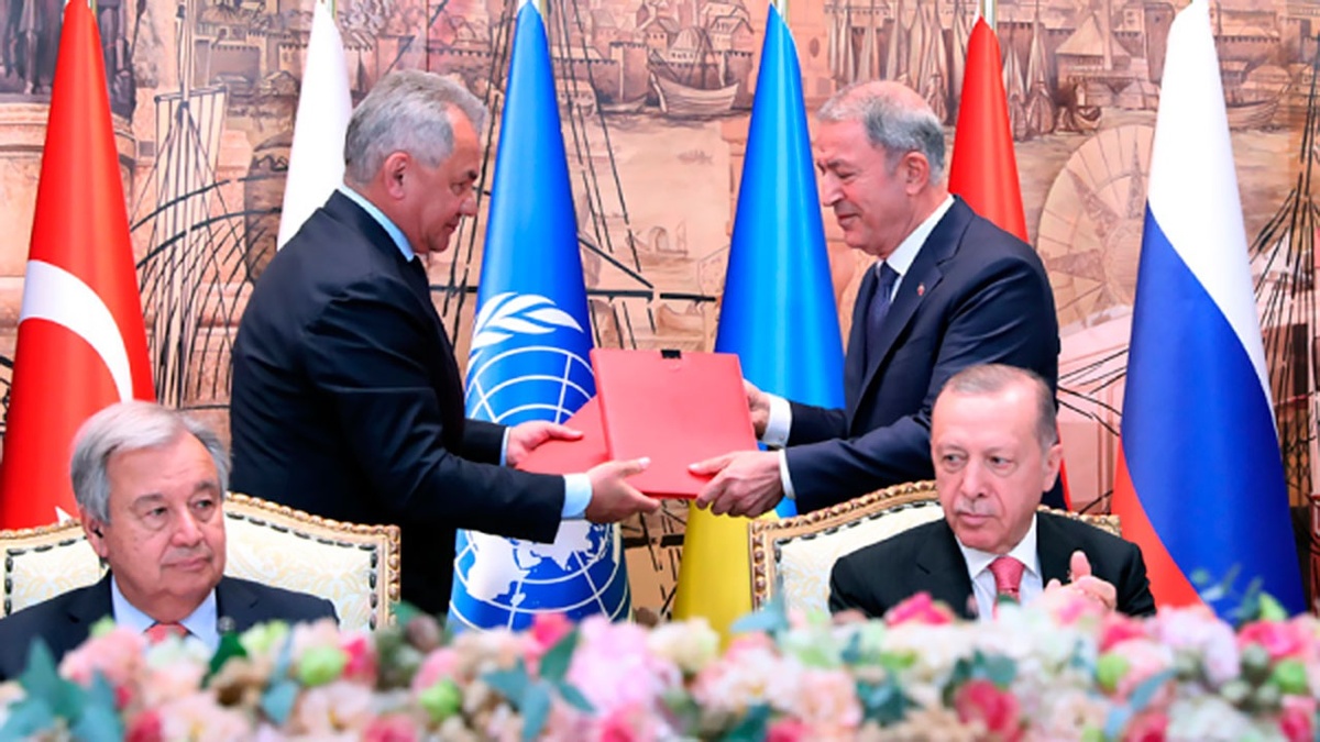 - Россия, Украина, Турция и ООН подписали в Стамбуле «Черноморскую зерновую инициативу» об организации безопасного морского коридора для сельскохозяйственных грузов с Украины. Соглашение подписали министр обороны РФ Сергей Шойгу, министр инфраструктуры Украины Александр Кубраков, министр обороны Турции Хулуси Акар и генсек ООН Антониу Гутерриш.