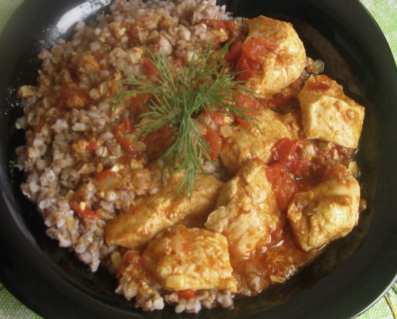 - Разогреваем гречку и курицу.