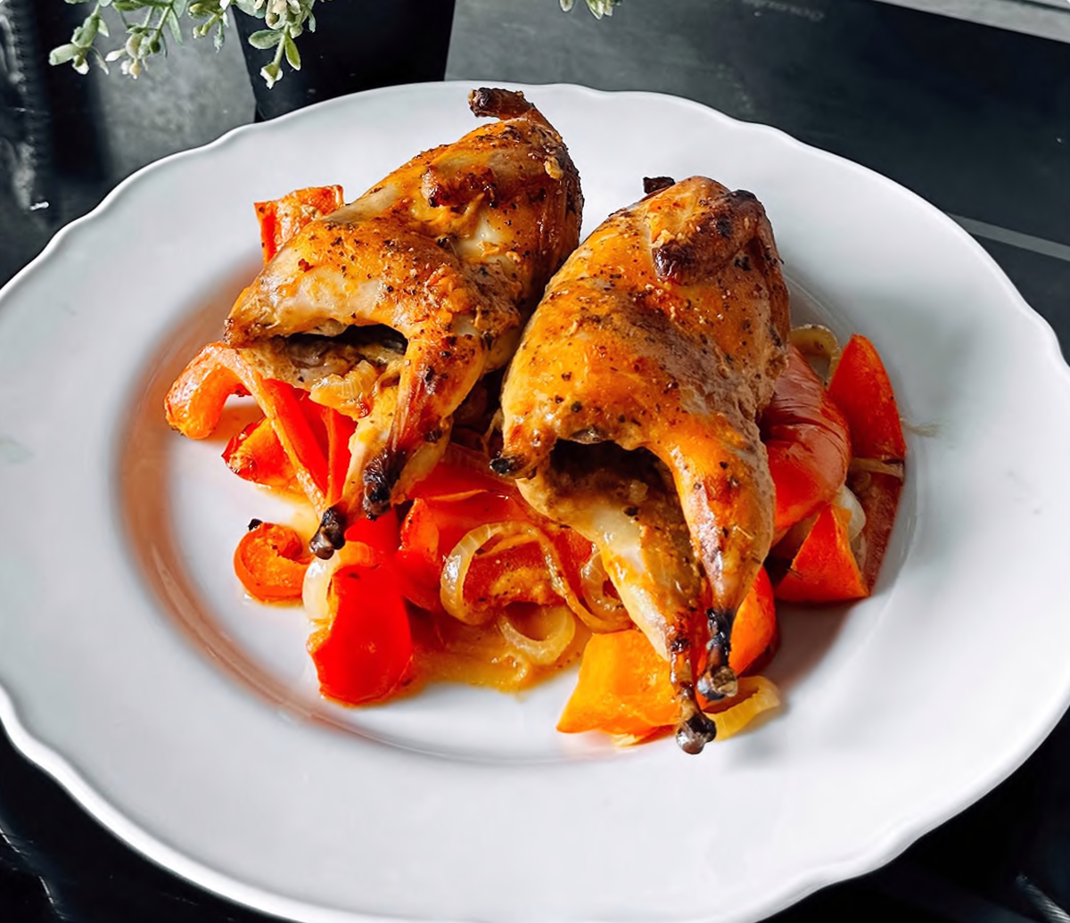 - Финальный аккорд и запекание: берём форму для запекания (лучше глубокую, чтобы маринад не вытек). Выкладываем на дно обжаренные лук и перец. Сверху аккуратно укладываем наших перепёлок (или курицу), поливаем остатками маринада (не упустите ни капли!). Отправляем эту красоту в разогретую до 180 градусов Цельсия духовку и забываем о ней на 40 минут. Потом можно доставать и наслаждаться!