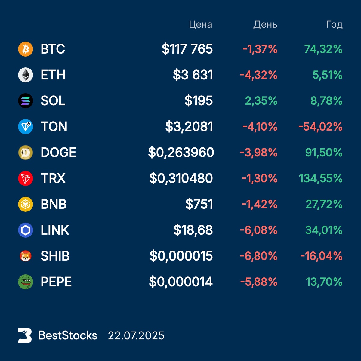 Курсы основных криптовалют: Bitcoin, Etherium, Solana, Toncoin, Dogecoin, TRON, BNB, Chainlink, Pepe, Shiba Inu на текущий момент #крипта #crypto #курс #BTC #ETH #SOL #TON #DOGE #TRX #BNB #LINKUSD #PEPEUSD #SHIBUSD ••••• 📢 Несколько раз в неделю полноценные аналитические обзоры рынка США. Занимательно и просто для понимания даже для новичков.