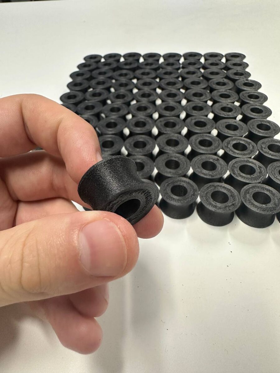 На фото втулки для подвесных качелей. Напечатаны из полиамида. Крепкие, выдерживают большой вес. Уже не первый год отлично работают у заказчика 👍🏼