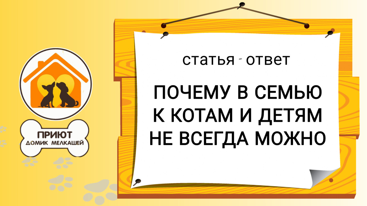 Сегодня мы хотим ответить на один из вопросов, который не редко возникает к приюту Домик Мелкашей: ПОЧЕМУ Я НЕ МОГУ ВЗЯТЬ СОБАКУ В СЕМЬЮ, ГДЕ ЕСТЬ ДЕТИ И КОТЫ? Мы очень ценим желание подарить дом приютской собаке. Но у наших опасений есть основания — не личные предпочтения, а практический опыт. В приоритете и превыше всех желаний потенциальных хозяев для волонтеров приюта Домик Мелкашей — это безопасность собаки! Кошки — непредсказуемые животные. Даже спокойный и флегматичный кот, ранее живший с другими питомцами, может резко изменить поведение при появлении нового животного.