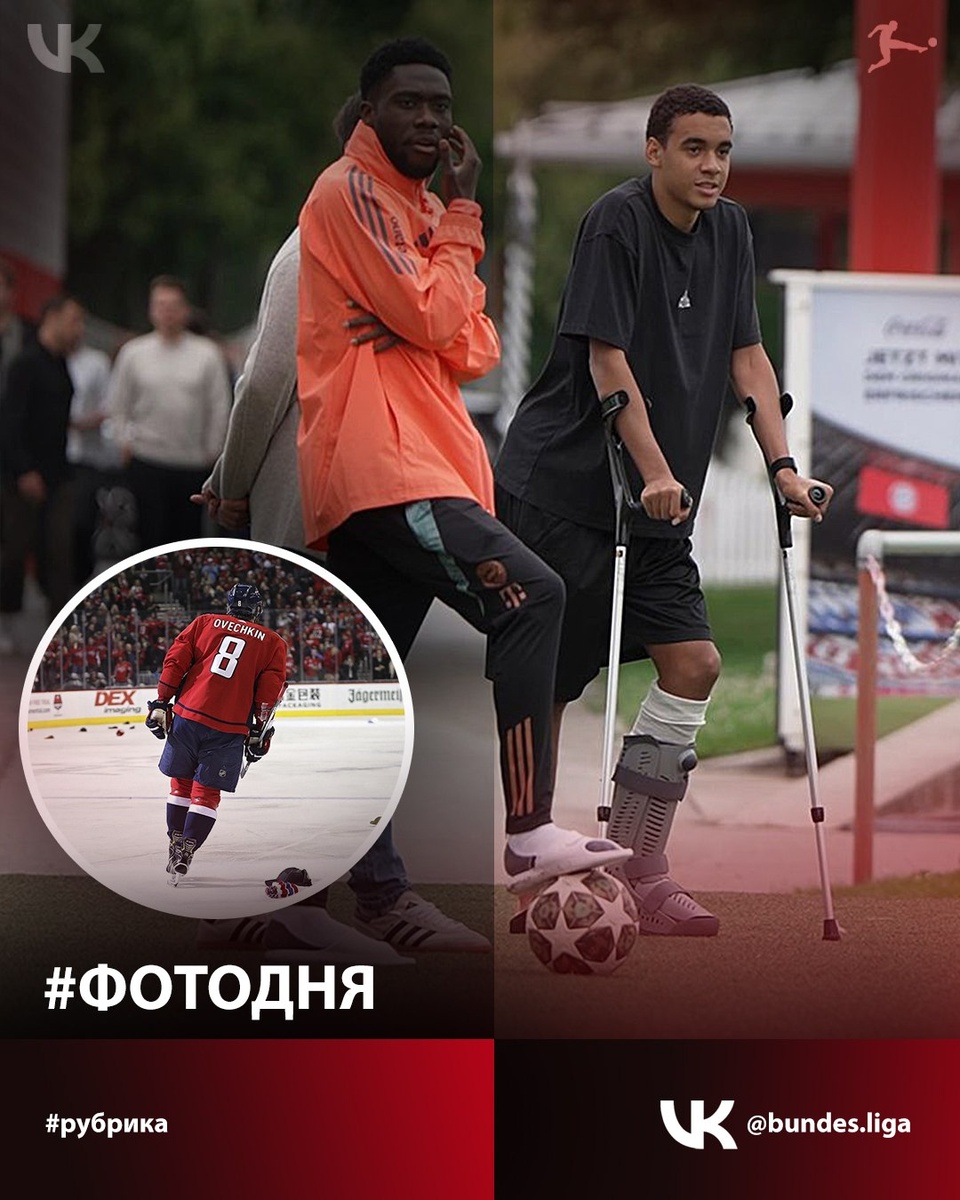 #ФотоДня 📸 Джамал Мусиала впервые пришёл на тренировку «Баварии» на костылях. Напомним, игроку была сделана операция на ноге после перелома малоберцовой кости. ✍ Отметим, что похожую травму получил 19 ноября 2024 года хоккеист Александр Овечкин. Российский спортсмен (39 лет) уже 2 декабря встал на коньки и приступил к тренировкам на льду. 28 декабря 2024 года Овечкин полноценно вернулся на лёд после перелома малоберцовой кости 🤯🤯🤯 Разумеется, организмы у всех разные. И всё-таки интересно, сколько понадобится Джамалу времени на восстановление ⁉