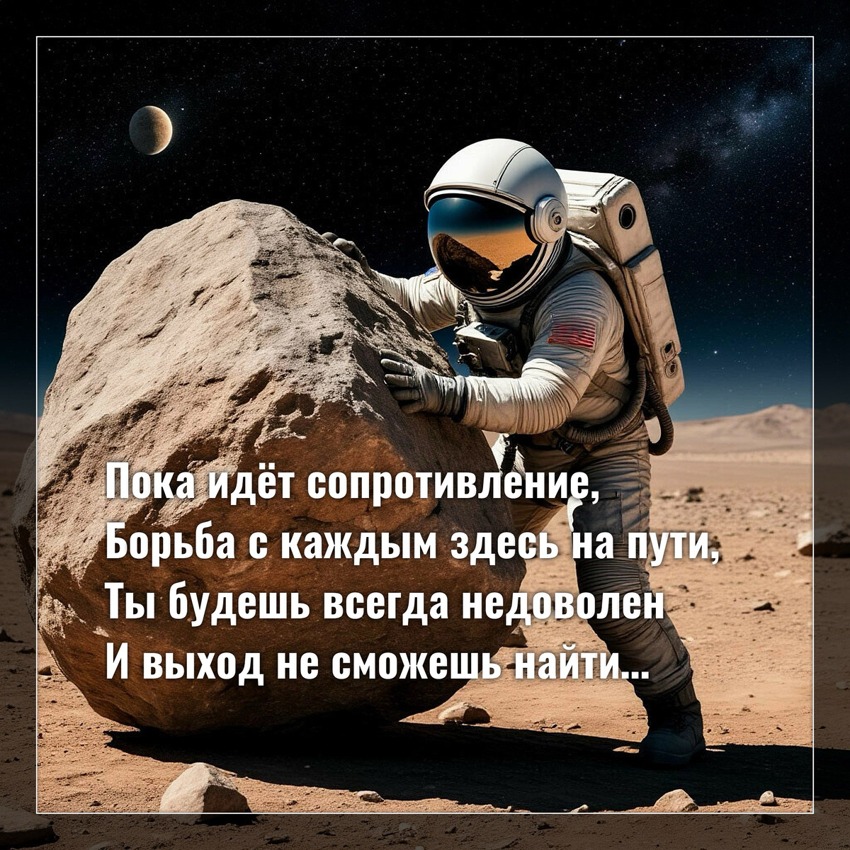 Пока идёт сопротивление, Борьба с каждым здесь на пути, Ты будешь всегда недоволен И выход не сможешь найти, Хотя выход есть и дороги, Одна рядом лучше другой, Но ты слишком здесь увлечен Невидимой с кем-то борьбой, А без борьбы будто нет жизни, Не можешь заняться ничем, Кроме сопротивления, А сердце тебе зачем? Таланты зачем, язык? Способность читать и писать? Что ты ещё не умеешь? О чем ты не можешь сказать? Задумайся, сколько всего Ещё не познал на Земле, А делаешь вид, что всё знаешь, Начав строить путь к себе, Свою сбережёшь энергию Наконец перейдёшь в созидание И перестанешь жизнь Рушить свою заранее.