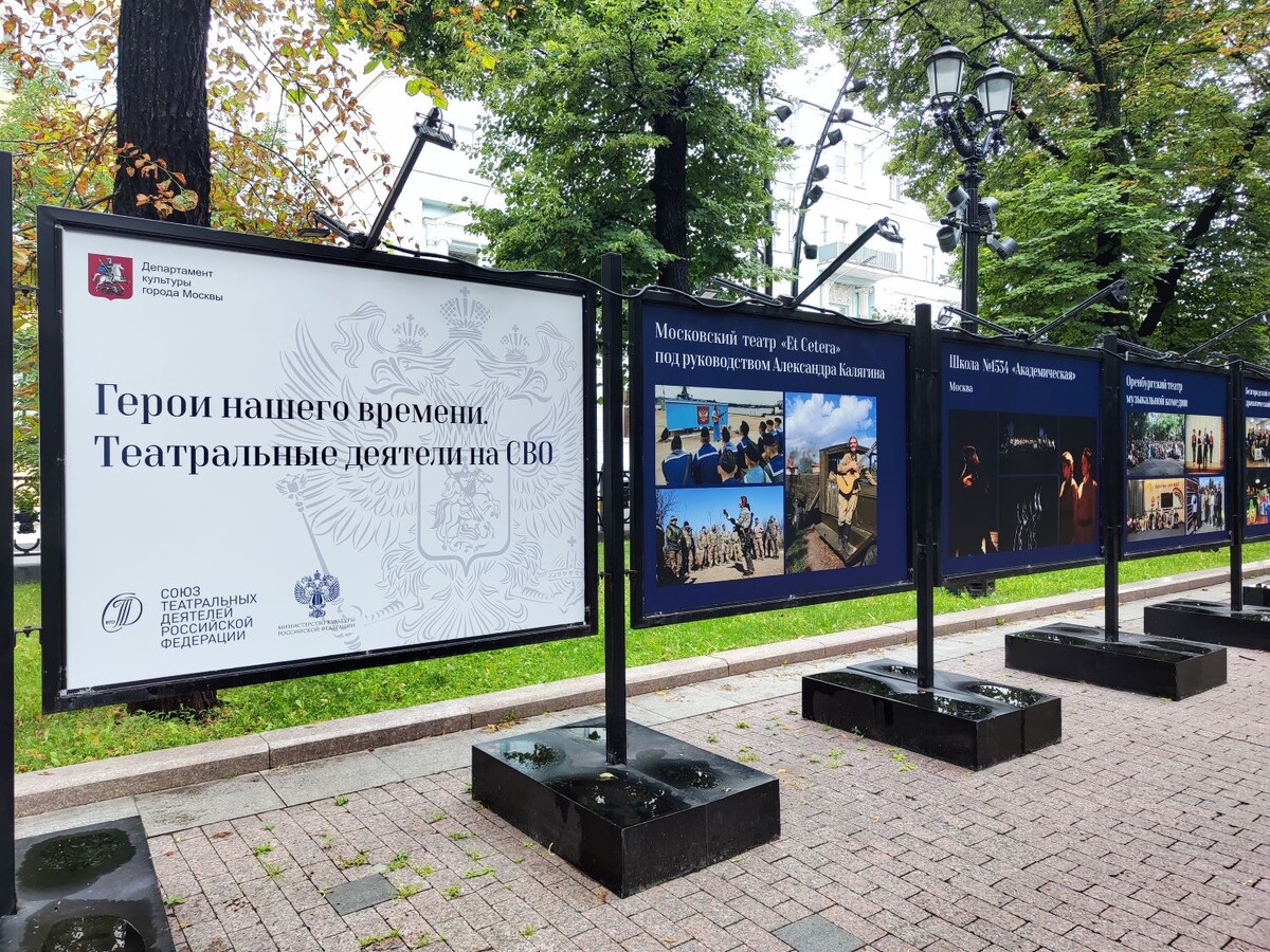 В Нарышкинском сквере на Страстном бульваре в Москве открылась уличная фотовыставка «Герои нашего времени. Театральные деятели на СВО», организованная Союзом театральных деятелей России. Она продлится до 15 августа.