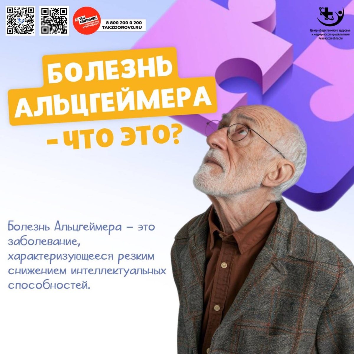 🧠 НЕДЕЛЯ МОЗГА: ЧТО ТАКОЕ БОЛЕЗНЬ АЛЬЦГЕЙМЕРА? Не просто забывчивость! Это прогрессирующее нейродегенеративное заболевание, разрушающее память, мышление и навыки. ❗ Ранние признаки (отличаются от нормы!): ➤ Потеря недавних событий ➤ Трудности с привычными делами ➤ Забывание простых слов/имен ➤ Путаница во времени/месте ➤ Сложности с планированием 💡 Важно знать: • Чаще после 65 лет, но не норма старения • Неизлечима, но ранняя диагностика замедляет • Профилактика: спорт, питание, тренировка ума, общение Не игнорируйте симптомы! Консультация невролога — первый шаг. #НеделяМозга #Альцгеймер #ЗдоровьеМозга #ЗдороваяРязань