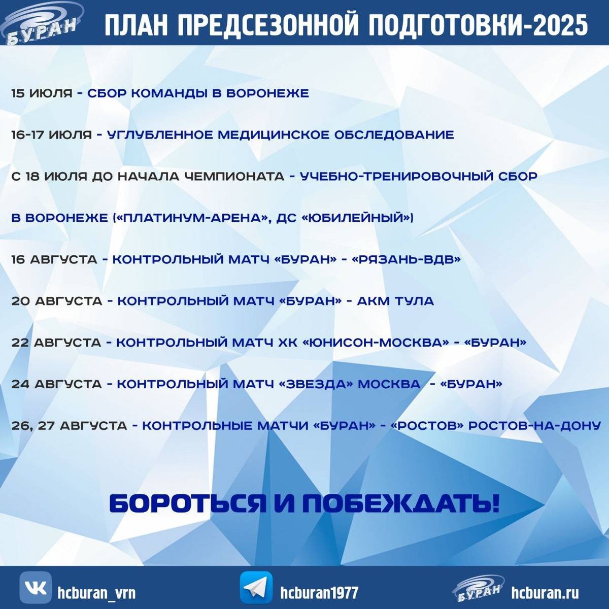 🏋️♀️🏃Команды ВХЛ уже не только вышли из отпуска, но уже перешли на двухразовые тренировки. А это значит, что совсем скоро нас ждут и предсезонные турниры, ну и отдельные товарищеские матчи. Делимся самыми интересными из них!🚀 *Контрольные матчи с участием "Юнисон-Москва" не состоятся
