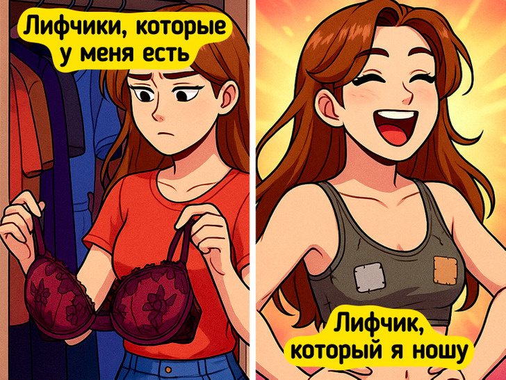 - У нее есть коллекция прекрасного кружевного белья, но душа всегда выбирает старенький топ, в котором можно дышать и жить.