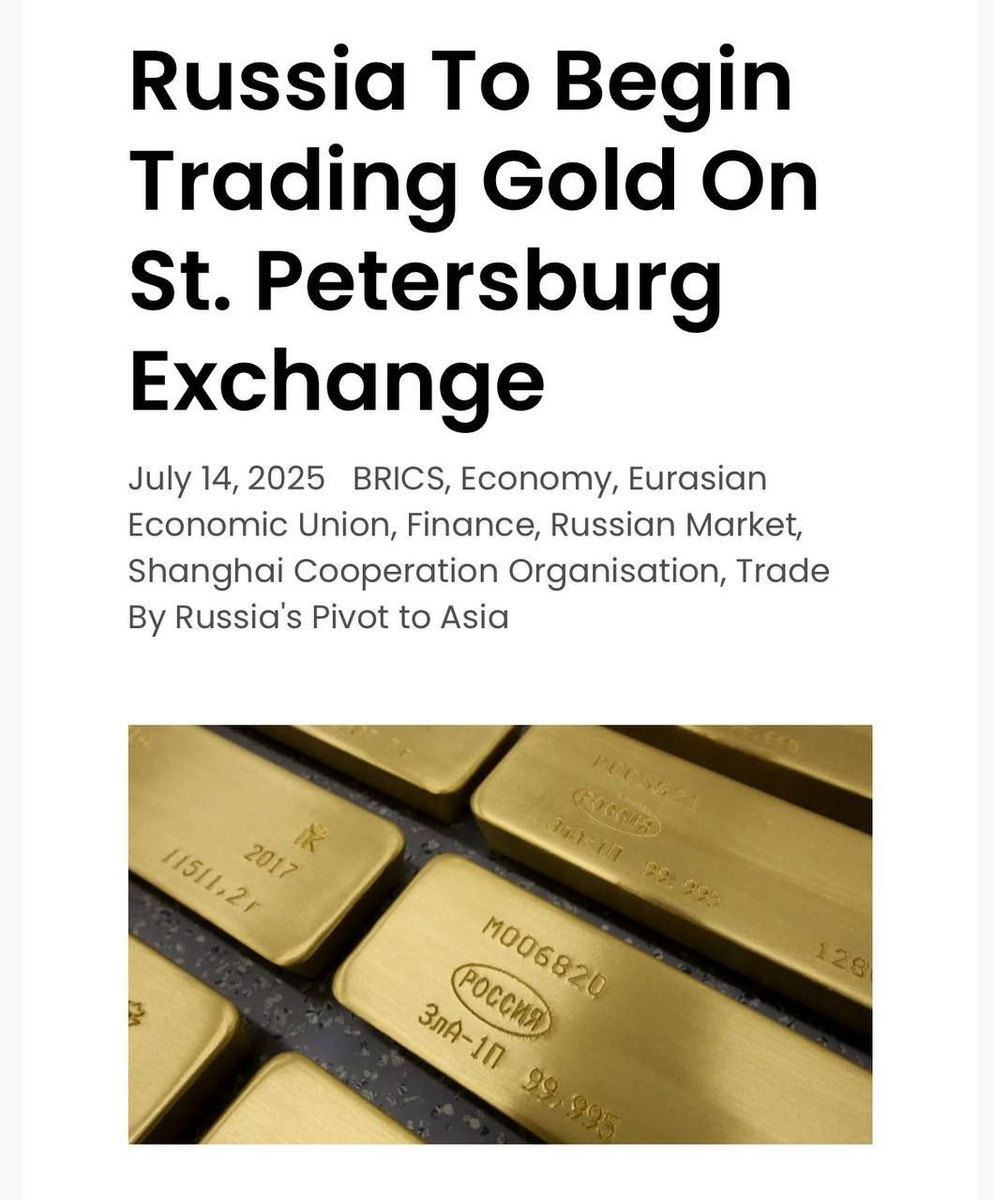 🇷🇺💰 Лондон гудбай! Россия создает золотой "анклав"? 🔥 Россия готовится к запуску собственной торговой площадки для золота, что позволит ей проводить операции независимо от западных финансовых институтов. 🤔 Этот шаг отделит ценообразование на золото в России от влияния западного финансового картеля, создавая альтернативную систему. 😲 Создание независимой платформы позволит России более свободно управлять своими золотыми запасами и влиять на формирование цен на золото. 🎯 Запуск российской торговой платформы может стать важным шагом в дедолларизации экономики и укреплении позиций России на мировом рынке золота.