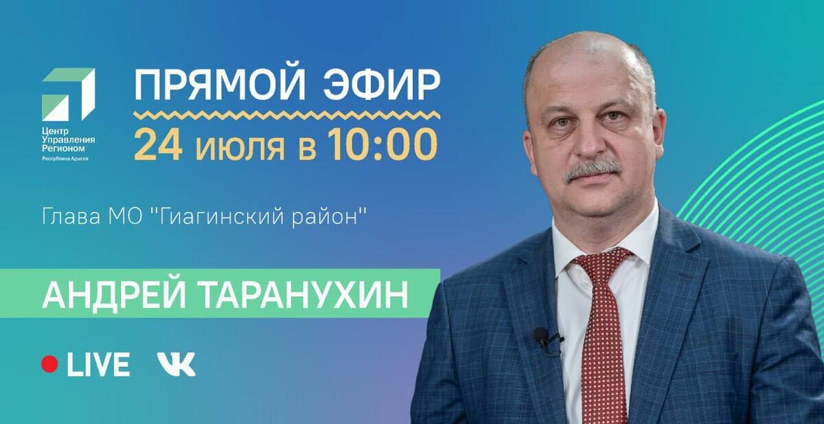 24 июля в 10:00 ЦУР Адыгеи проведет прямой эфир с главой Гиагинского района Андреем Таранухиным
