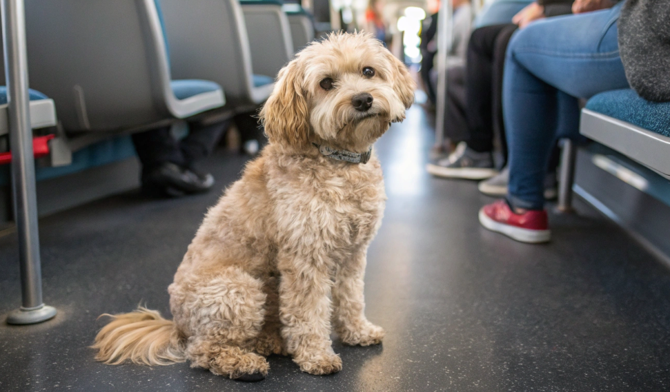 Пес даже ухом не повел. Сидел как памятник — спокойный, деловитый. Будто всю жизнь в общественном транспорте катался.
