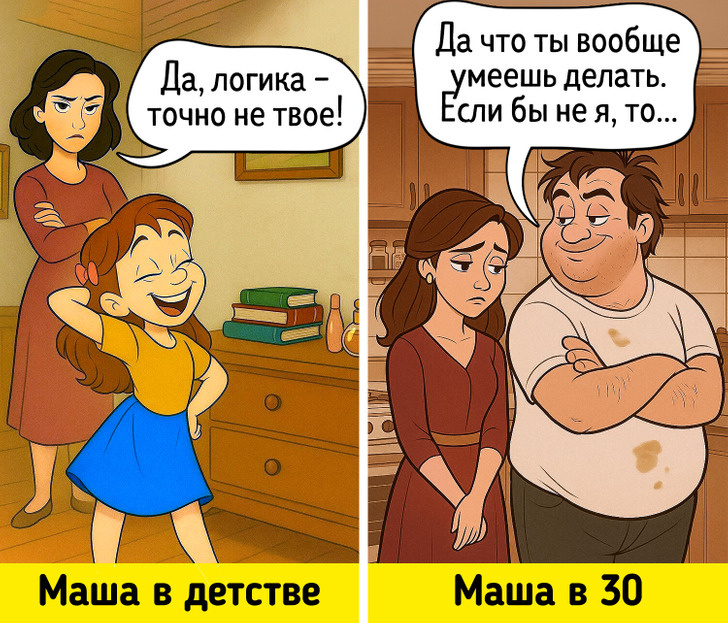 «Опять ты все испортил!» или «Ну почему у тебя руки не из того места?» — сколько раз вы слышали нечто подобное в детстве? Родители часто критикуют нас, искренне веря, что так мы станем лучше. Но вот что происходит на самом деле: эта «помощь» убивает нашу самооценку. Мы вырастаем с ужасным ощущением, что ни на что не способны. И из-за этого можно даже оказаться в деструктивных отношениях, когда партнер говорит, что если бы не он, эта неумеха ни с чем бы не справилась.