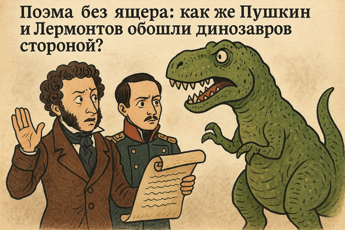 Вот сижу я на веранде, чай пью с курабье, читаю умные мысли в интернете, и вдруг — вижу картинку, что меня прямо встряхнула! Там написано: «Динозавров открыли в 1824 году, и теперь я думаю о том, что декабристы узнали о динозаврах, Пушкин узнал, Лермонтов узнал. И никто не посвятил им ни строчки стихов». И я, старая бабка, прикипаю к мысли этой, как к лоскутному одеялу зимним вечером. Как же так?! Ведь поэты — они же наблюдательные, чувствительные, им и осень — повод для оды, и мушка — тема баллады. А тут динозавры! 🦖 И молчок... 🤐 Открыли-то их действительно в 1824 году — англичанин Гидеон Мантелл первым описал игуанодона. А уже в 1842 году слово «динозавр» (ужасный ящер) предложил другой учёный — Ричард Оуэн. Так что и Пушкин, и Лермонтов, и декабристы могли что-то слышать. Может, в газетке англицкой мельком, может, в разговоре за самоваром. А может, и не придали значения этим странным "ископаемым костям". 🦴 Думаю я, бабка с жизненным опытом и книжн