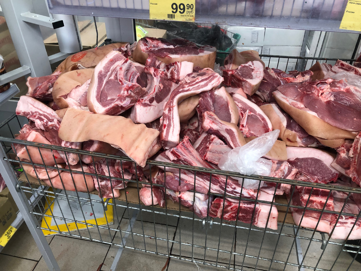 В продаже имеется мясо свинины на кости. Большой выбор кусочков на любой вкус. Мясо свежее. Цена 236 рублей за кг. Это очень дешево! В обычных мясных магазинах цена гораздо дороже.
