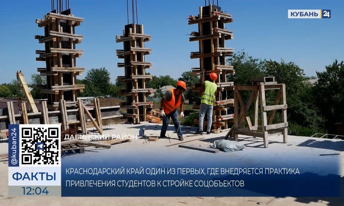 Видео канала «Кубань 24» В Лабинске студотряд из шести человек уже третий день трудится на строительстве нового корпуса начальной школы. «На данный момент у нас два человека обслуживают помпу для выкачки воды, двое занимаются защитной покраской арматуры, один шпаклюет, еще один помогает с работой в подвале. На стройке нас направляют, обучают и показывают, как работать правильно», — рассказал командир студенческого стройотряда Владимир Клейн-Михайлов. Практика продлится до сентября. Студенты будут официально трудоустроены и получать заработную плату — более 90 тыс. рублей в месяц. «Когда мы задумались, где брать грамотных специалистов, пришло понимание: их нужно воспитывать. У нас есть свои хорошие кадры, и мы должны дать им возможность реализовать себя по специальности», — отметил первый заместитель руководителя департамента строительства Краснодарского края Владимир Тараскунов. Кубанские студенческие отряды уже набирались опыта на стройках в Якутии, в том числе при возведении объектов
