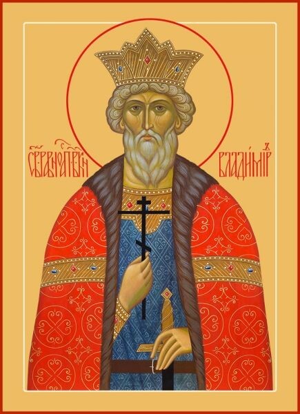 Великий князь Владимир Святославич (†1015) был сыном Святослава, внуком Святой Княгини Ольги (Елены). Его воспитанием занимался брат по матери язычник Добрыня.