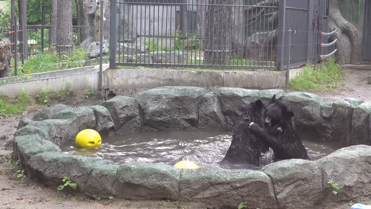 В новосибирском зоопарке уссурийские медвежата устроили бой в бассейне