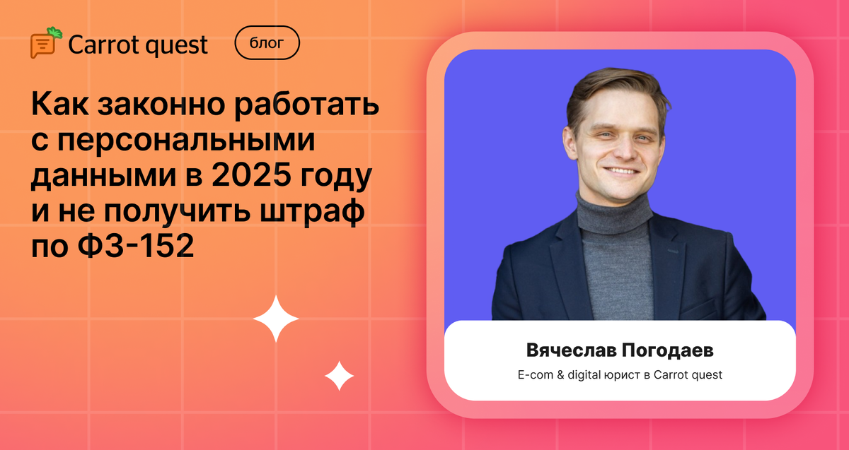 Недавно мы провели вебинар о том, как в 2025 году бизнесу работать с персональными данными без риска штрафов. Спикеры — Ольга Захарова, эксперт по цифровому праву DRC, и Вячеслав Погодаев, e-com & digital юрист.