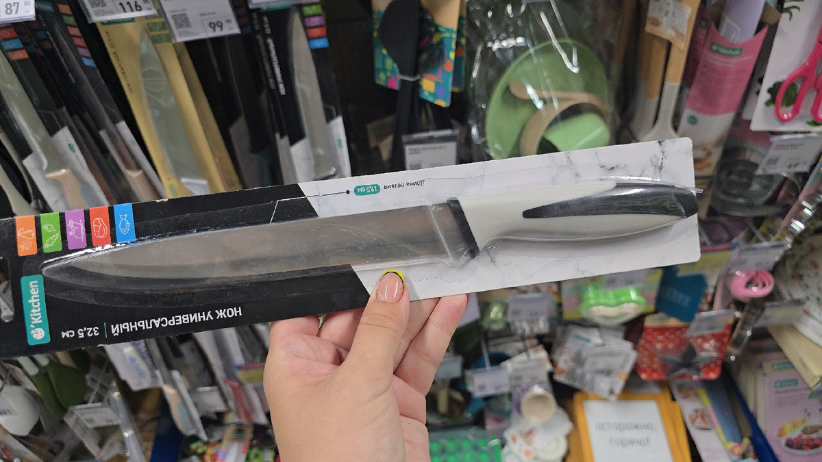 Всем большой привет! Я к вам снова с обзором новинок из магазина Фикс Прайс. Нож универсальный подходит для нарезки и шинковки любых продуктов. Позволит получить аккуратные кубики и тонкие слайсы. Лезвие из нержавеющей стали не впитывает запахи, жир и не влияет на вкус продуктов. Длина ножа: 33,5 см (лезвие – 19,5 см). Состав: нержавеющая сталь, полипропилен, ТПР. Товар представлен в ассортименте. Китай. Цена 99 рублей.