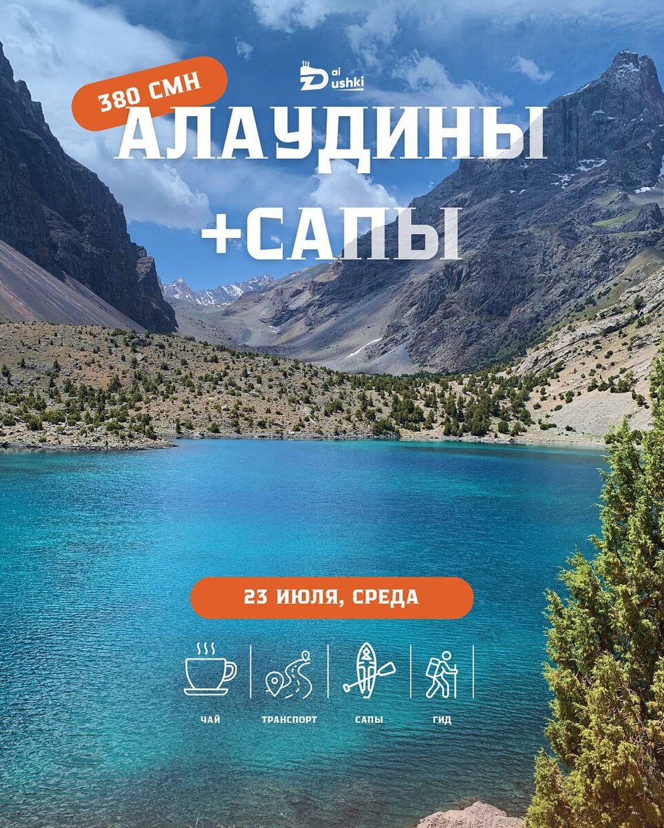 23 июля, среда, -Алаудинское озеро, катание на сапах 🕔 5:30 - 19:00 💺 ДОСТУПНО: 10 мест 🥾 Сложность: 4/10 💳 380 ✅ Включено: дорога, гид, горячий чай, сап ⚡️"Мальдивы и Швейцария в Таджикистане" - так некоторые гости и жители Таджикистана называют Алаудинские озера, к которым мы отправимся в эту среду. Необыкновенный окрас озер от изумродного до бирюзового цветов делает эти озера необыкновенно красивыми. На фоне заснежанных пиков, одних из самых высоких в Фанских горах, среди которых пик Чимтарга, создает необыкновенный, даже немного внеземной ландшафт! Катаясь на сапах по Большому Алаудинскому озеру, глубина которого достигает около 16 м, кажется, что ты как будто паришь в воздухе на сапах, и некоторые испытывают легкое головокружение от кажущейся высоты, так как не смотря на глубину, видны даже самые маленькие камни на дне. 📍Место сбора у Шоколадницы, возле супермаркета Ситора. ☎️ Для записи 989093020 @daidushki_tours (Telegram) ДайДушки | Подпишись, чтобы не потерять на