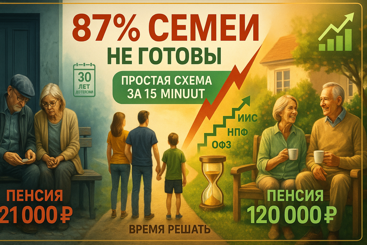 Представь, что через 25-30 лет ваша семейная пенсия будет не 40, а 120 тысяч рублей в месяц. Сейчас ты узнаешь проверенную схему пенсионных накоплений без стресса, которую используют финансово грамотные семьи по всему миру.
