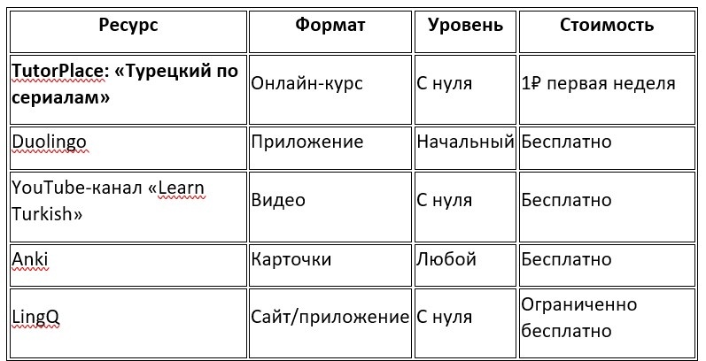 - Сериала или курса для новичков, например, «Турецкий по сериалам» на TutorPlace.