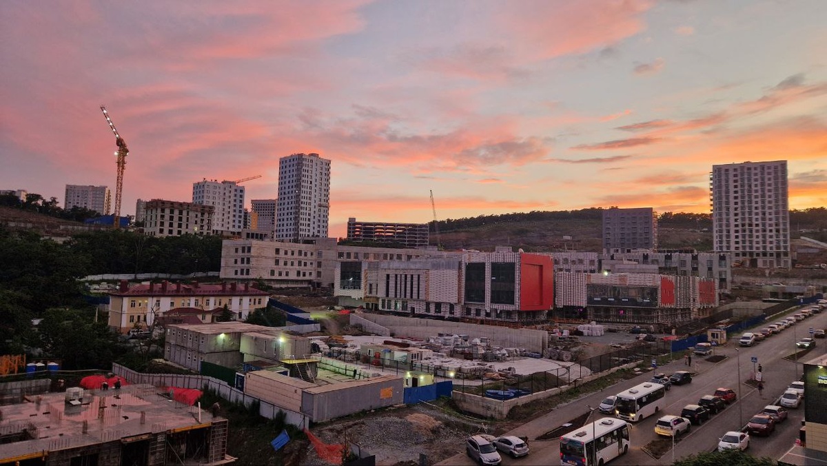 С таким закатом даже долгострой школы становится краше