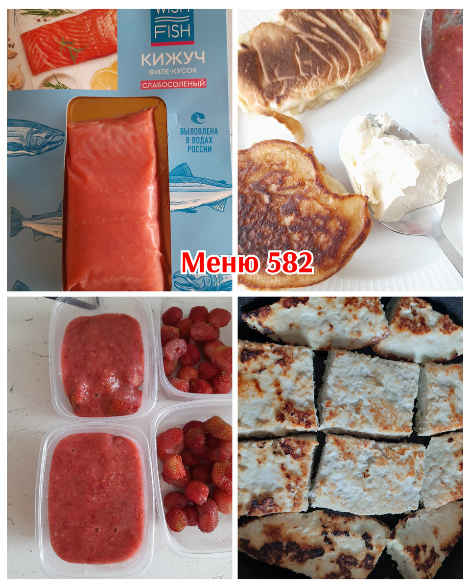 - Очень мне понравилось таким образом готовить котлеты. Не лепить их из фарша, а выкладывать на сковороду цельным блином. А потом разрезать силиконовой лопаткой, когда одна сторона зажарится. - В Ленте заказала слабосоленый кижуч. Впервые вижу эту рыбку в засоленном виде. Любопытно было попробовать. Состав стандартный – рыба, соль, консерванты. Изготавливает г. Подольск, Московская область. Где выловлена – ничего не написано. Только на лицевой стороне – что выловлена в водах России. Вроде как, кижуч не разводят в виде аквакультуры. Так что в рыбе, которая плавает в морях – больше Омеги и других витаминов. Она немного полезнее искусственно выращенной. А вот по вкусу она немного проигрывает форели или семге. Более сухая. Но, в отличии от сырой рыбы (которую я пробовала в дне 552), в соленой нет рыбного тинного привкуса. Она довольно нейтральная и приятная по вкусу. - В наших широтах сезон огородной клубники почти закончился. А я успела наморозить ее. На дно контейнеров выкладываю цельные