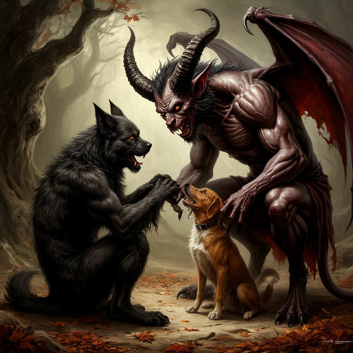 Демон играет с собакой