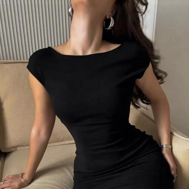 Лаконичный дизайн с открытой спиной делает это платье универсальным выбором для вечеринок, свиданий и особых случаев. Глубокий чёрный цвет легко сочетается с различными аксессуарами и обувью, позволяя создавать как классические, так и смелые образы.