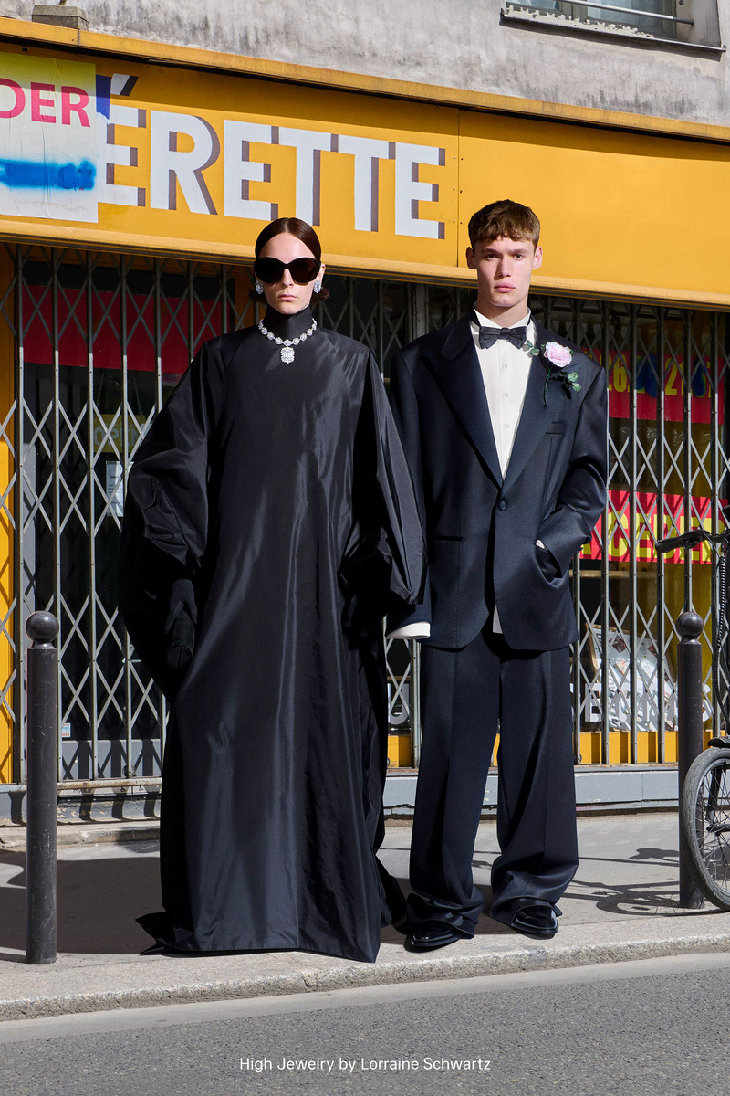Сегодня состоялся грандиозный финал всего, что Демна создал для Balenciaga за последние десять лет: его последний кутюрный показ перед тем, как он официально передаст бразды правления Пьерпаоло Пиччоли, покинет Париж и перейдёт в Gucci. «Я никогда не выходил после своих показов. Но в этот раз я почувствовал, что обязан это сделать — для себя, для Balenciaga и всего, что мы сделали здесь за 10 лет. И мне кажется, лучше уже не придумать», — сказал он за кулисами, одетый в выцветшее серое худи, кепку Balenciaga и камуфляжные брюки. И каким же ярким было это прощание в стиле Демны! Ким Кардашьян в образе Элизабет Тейлор из «Кошки на раскалённой крыше» в тандеме с бриллиантами самой актрисы. Изабель Юппер, играющая роль ультра-парижанки, с дамской сумочкой на сгибе локтя, в чёрных корсетных брюках и скульптурной водолазке от кутюр. Ева Герцигова, демонстрирующая неоново-жёлтое платье с акцентированными бёдрами и перекрученным сатиновым лифом. Даже музыкант BFRND прошёлся по подиуму в мешков