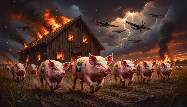 Уничтожены десятки самолетов и западные военные грузы на миллионы тонн. Чем будут воевать загнанные в окопы безмолвные поросята с улиц Киева - не знают даже в Брюсселе.