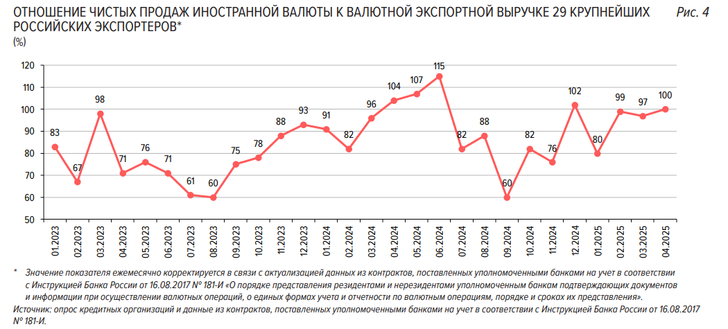 Вышел свежий #отчётЦБ «Обзора рисков финансовых рынков» за июнь. В нём достаточно много интересных моментов и по валюте, и по ОФЗ. Кратко: Рубль — крепкий, спрос на валюту низкий, экспортеры продают почти всё. Баланс хрупкий. Рынок долга весь июнь жил надеждой на разворот ЦБ. Доходности уже на минимумах, и рынок, похоже, забежал вперёд. Корпораты смотрятся интереснее: тоже растут в цене, спред к ОФЗ всё ещё щедрый, купоны — жирные. Подробно: Общий тон — обнадёживающий. Финансовый рынок подхватил риторику смягчения, не дожидаясь самого снижения ставки. 💵 Валюта: всё спокойно — пока Седьмой месяц подряд рубль укрепляется к доллару. Вопрос на миллион — когда начнёт слабеть? ЦБ напрямую не отвечает, но даёт несколько интересных штрихов: — «Спрос на валюту со стороны юрлиц достиг минимума за последний год» — рынок на дне по импорту и желанию страховаться от валютных рисков. — Объём чистых продаж валюты экспортёрами снова вырос: +3% м/м, до $7,5 млрд. — Доля продаж к экспортной выручке в а