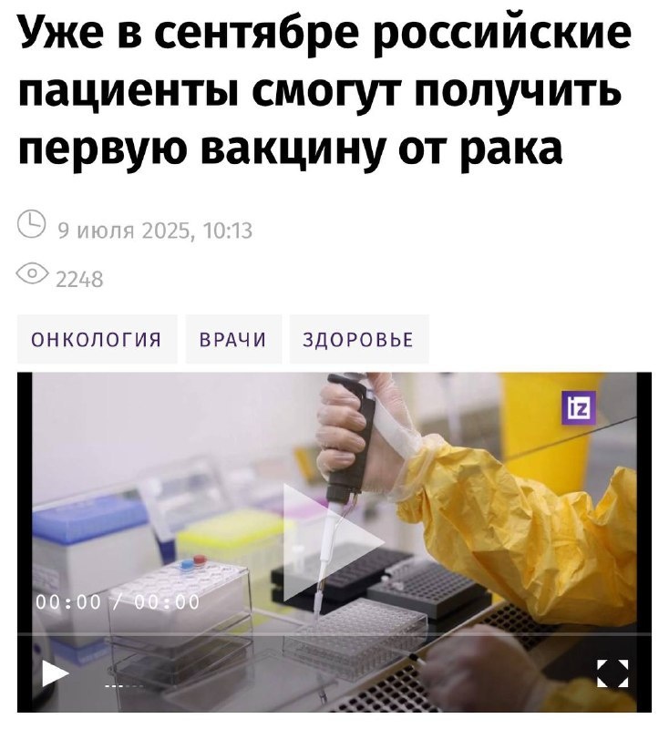 В сентябре в России стартует выдача первой в мире вакцины от рака — и это реально революция в медицине!