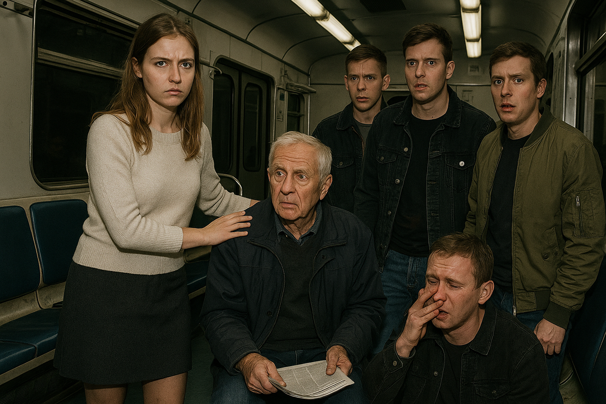 На следующей станции в вагон вошла компания подвыпивших молодых людей. Четверо парней лет двадцати пяти, громко смеются, матерятся. Сразу заметили пожилого мужчину, который сидел в углу с газетой.