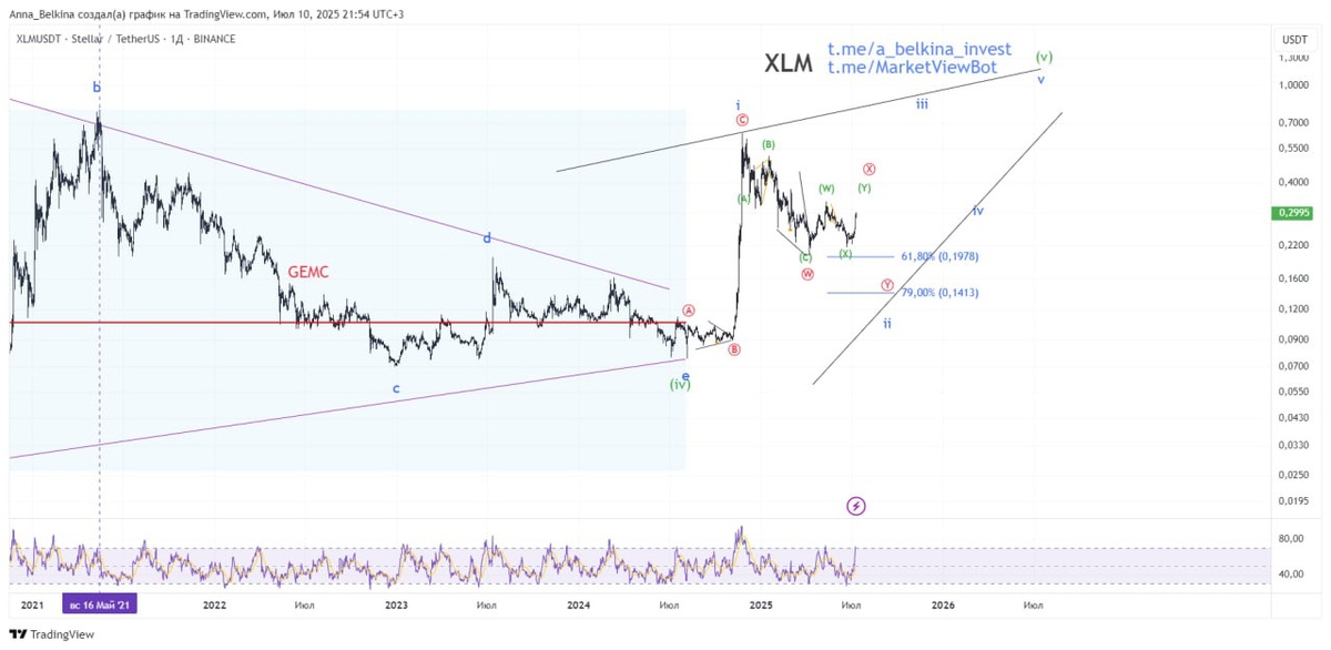#XLM #НеСкам продолжаем разбирать крипту в закрытом канале, хочу поделиться мыслями по стеллару, по которому идет отличная отработка разметки: https://dzen.ru/media/id/65b8789ff12bfe0796a26941/xlm-xrp-6838947060185e6b73dbc65f В развитии волна [x], которая может принять любую форму коррекции. Я веду острую коррекцию в виде двойного зигзага. После завершения волны [x] ожидаю увидеть снижение в [y] of ii в обозначенный на графике целевой диапазон. Не является ИИР 💪 Бот Закрытого Канала