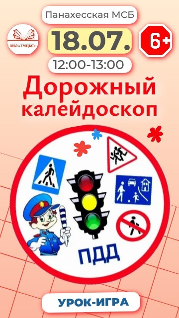 📢 Анонс. Урок-игра «Дорожный калейдоскоп» 🚦 📅 18 июля 2025 г. 🕔 12:00 – 13:00 🏢 Панахесская МСБ Приглашаем детей на увлекательный урок-игру «Дорожный калейдоскоп», посвященный Дню светофора, который отмечается в России 5 августа! 🚦 В первой части урока наши юные участники услышат рассказ о дорожных знаках и правилах дорожного движения, где они узнают, почему так важно знать и соблюдать эти правила. 🎲 Во второй части ребят ждут интересные задания: «Запрещается — разрешается» и «Весёлый светофор» и увлекательная игра «Это я, это я, это все мои друзья!», где они смогут проверить свои знания о правилах дорожного движения. В игровой форме дети будут решать различные ситуации на дорогах, ведь знание правил – это залог безопасности! 💚💛❤️ Они узнают, что означают красный, жёлтый и зелёный цвета светофора, а также смогут продемонстрировать свою внимательность и ответственность🚸